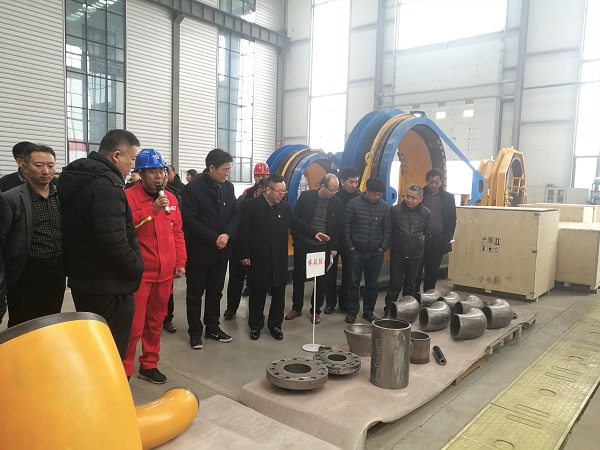 全體參加觀摩會(huì)人員在股份公司董事長(zhǎng)、黨總支書(shū)記何清帶領(lǐng)下參觀了公司堆焊車間,參觀期間公司許總對(duì)我公司復(fù)合堆焊設(shè)備和技術(shù)進(jìn)行了詳細(xì)講解。