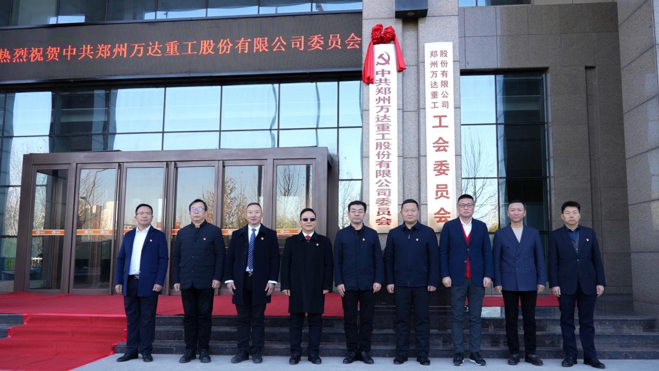 2023年12月22日上午,鄭州萬達重工股份有限公司舉行黨委成立揭牌儀式,鄭州航空港區組織人社局副局長(主持工作)李鵬,銀河辦事處黨工委書記趙淼,股份公司黨委書記、董事長何清,股份公司董事、總經理張付峰等領導出席揭牌儀式。儀式由股份公司黨委副書記、工會主席于江山主持。