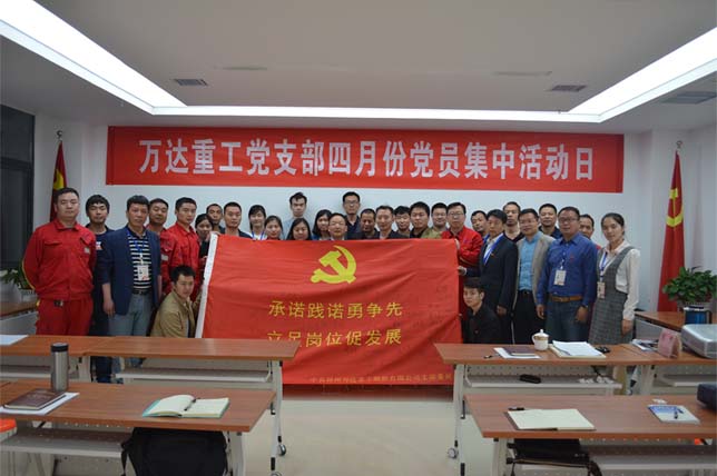 2017/04/24 541 4月20日晚上17點10分-19點30分,萬達重工黨支部各黨員、預備黨員、入黨積極分子等31人在新會議室舉行了4月份黨員集中學習和書記黨課宣講活動。 本次活動共分為五個議程。首先由黨支部書記何清同志帶領全體黨員重溫入黨誓詞,大家激情澎拜,高聲宣誓,重新找回了入黨時的榮譽感和使命感。接著,由宣傳委員張夢珠同志領讀了黨支部...