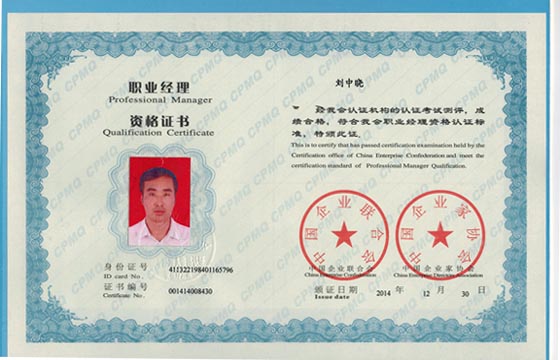 熱烈祝賀我公司劉保國等6位同志獲得職業經理人資格證書