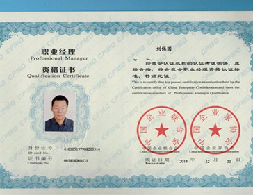 熱烈祝賀我公司劉保國等6位同志獲得職業經理人資格證書