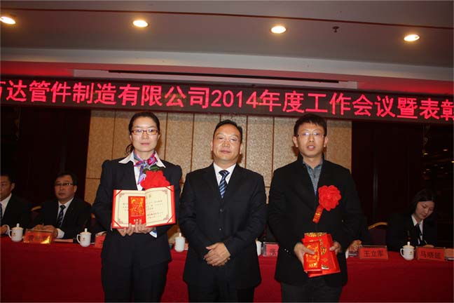 鄭州萬達管件制造有限公司2014年年會于2015年1月20日隆重召開。會議首先表彰了公司2014年度先進工作者、先進部門及班組、優秀干部、年度進步之星、銷售冠軍、優秀黨員等十余個獎項,并對獲獎者頒發了獎金和證書。公司董事長、黨委書記何清同志在會議上做了題為《適應新常態 開創新局面 實現公司持續健康穩定發展 》的報告,總結了2014年公司的發展歷程,取得的成績和不足,展望和部署2015年公司發展的目標和重點工作,為公司全力建設五位一體的萬達事業指明了努力方向。公司全體人員中午舉行了盛大的團拜招待會,歡聚一堂,其樂融融。