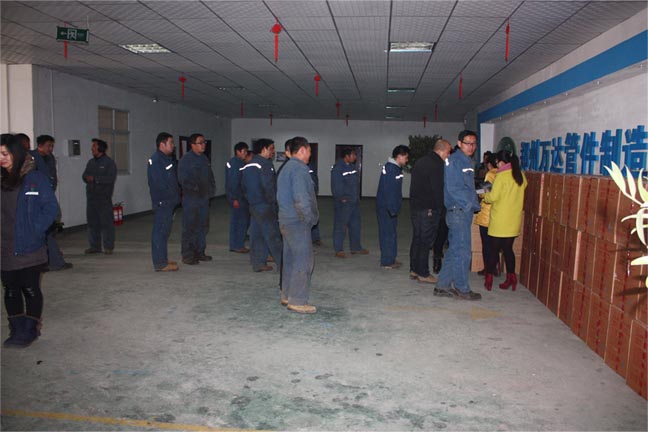 2015年2月4日下午13:00,公司組織的年終福利品發放工作在行政大廳熱鬧進行。
