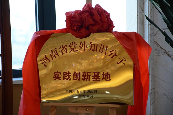 最后,在萬達重工八樓貴賓室召開調研座談會,張會長、李主任為“河南省黨外知識分子實踐創新基地”進行了揭牌。