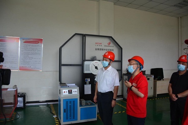 高義一行首先參觀了萬達重工技術中心(CNAS實驗室),股份公司董事長、書記何清就實驗室的高端檢驗檢測設備、檢測能力及產品研發能力、專利數量、國家標準、國際標準的參編情況等進行了匯報。