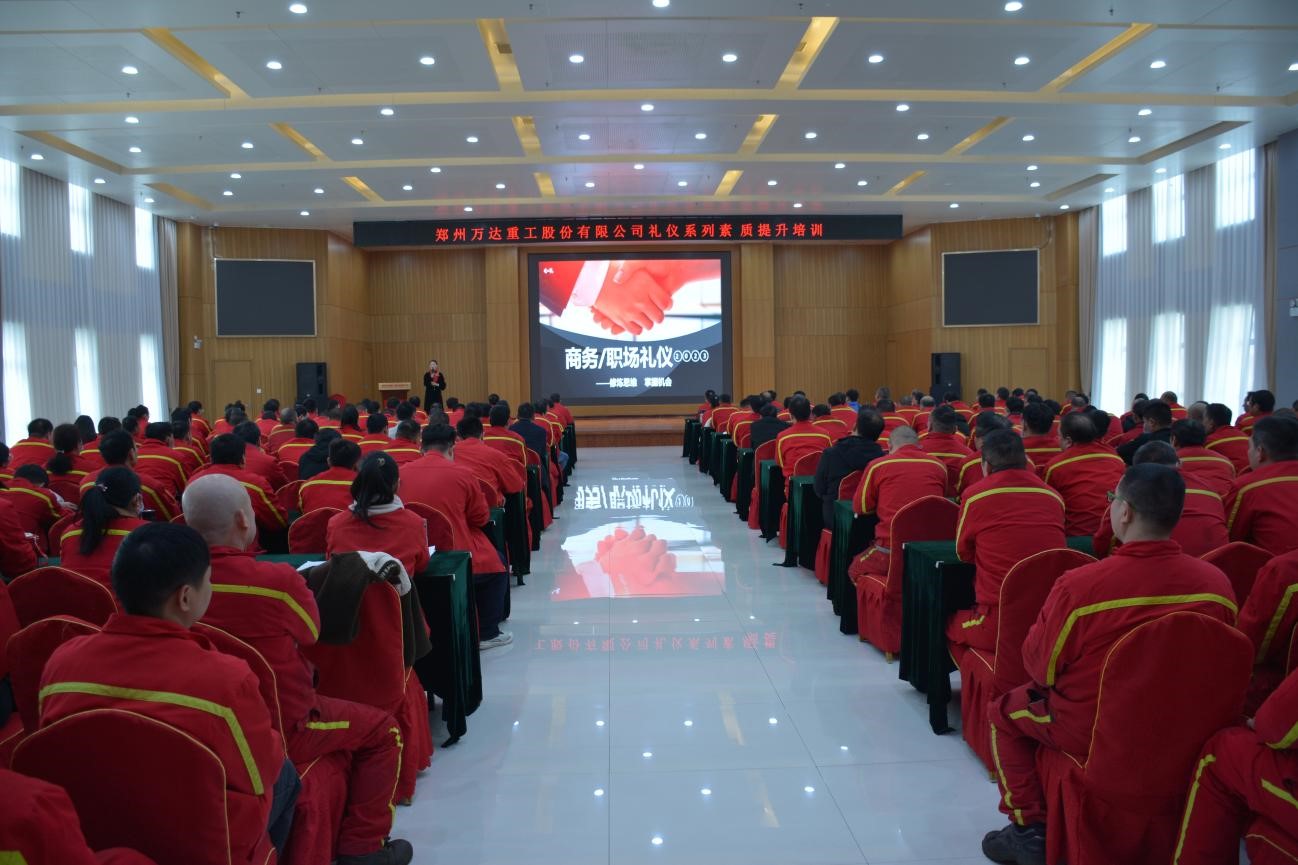 禮儀是一個人、一個企業乃至一個民族、一個國家文化修養和道德修為的外在表現形式,是做人處事的基本技能。為進一步提升公司品牌形象,提高員工整體商務、職場禮儀素養,助推實現公司高質量發展目標,根據公司2023年年度講師團培訓工作安排,2023年3月1日下午,鄭州萬達重工股份有限公司專門邀請資深禮儀講師白欣冉女士為全體員工開展禮儀系列素質提升培訓活動。股份公司董事長、書記、講師團團長何清及全體員工參加了此次培訓,講師團執行團長于江山主持會議。