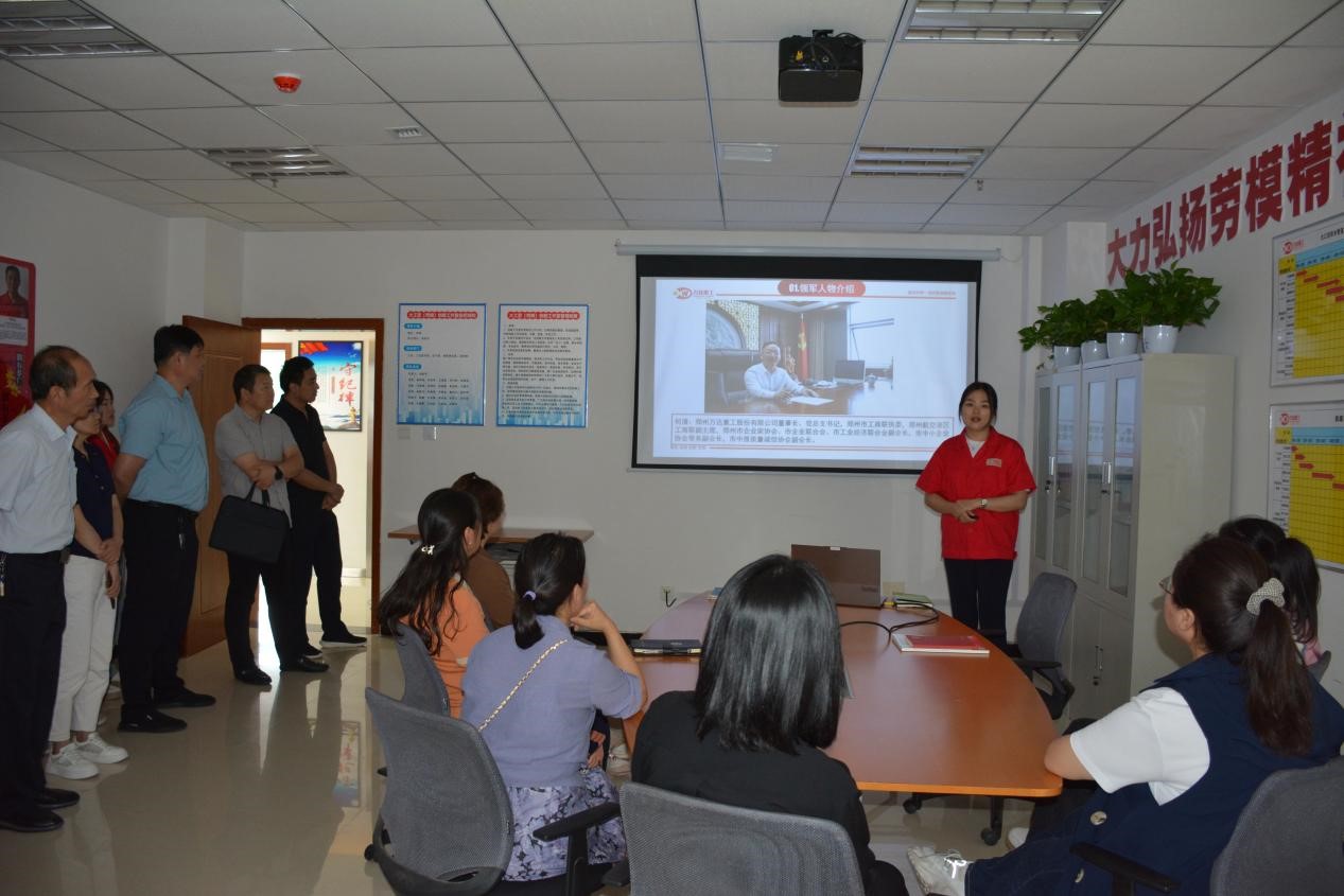 張科長一行首先來到二樓黨群基地,股份公司工會于主席依次介紹了黨群之家、職工書屋、勞模創新工作室、黨總支活動室、黨建紅色長廊等各功能室及工會活動開展情況。著重對萬達重工堅持以“黨建帶工建”的工作格局,突出勞模工匠創新工作室示范引領作用發揮情況進行了重點介紹。大家對萬達重工“何清勞模創新工作室”堅持自主研發,突破技術壁壘,不斷提升企業核心競爭力所取得的驕人成績贊嘆不已。