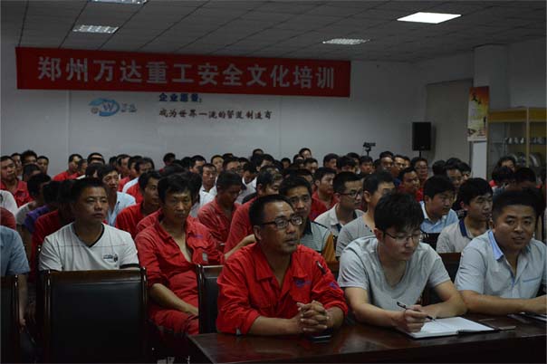 以人為本,打造幸福萬達,是萬達重工安全管理和安全文化建設的一個重要的原則。為提高員工安全意識,確保安全生產,鄭州萬達重工股份有限公司講師團昨日在公司會議室舉辦了 “安全文化建設宣貫培訓”。此次培訓由講師團執行團長(工會主席)于江山授課,會場座無虛席。