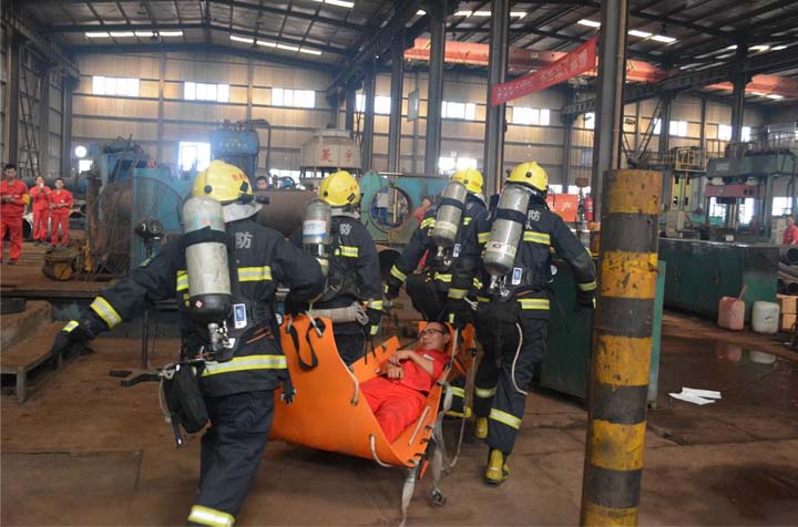 消防演練結束后,股份公司總工程師袁希海代表公司對此次消防演練活動進行了總結講話,首先對港區消防大隊司偉鵬參謀及港區消防中隊的20名戰士參與公司安全月的消防演練工作表示誠摯的感謝。指出,此次消防演練活動能夠成功舉辦,得益于港區消防大隊的大力支持,港區消防大隊為了此次消防演練順利進行,特派司偉鵬參謀帶領港區消防中隊的官兵到我公司進行協助公司完成了消防演練。同時強調,通過此次安全月活動中安排的消防演練活動,再次踐行了萬達重工的“強化安全發展觀念 提升全員安全素質”、“開創幸福萬達事業、打造企業本質安全”“建設平安萬達”的安全文化。